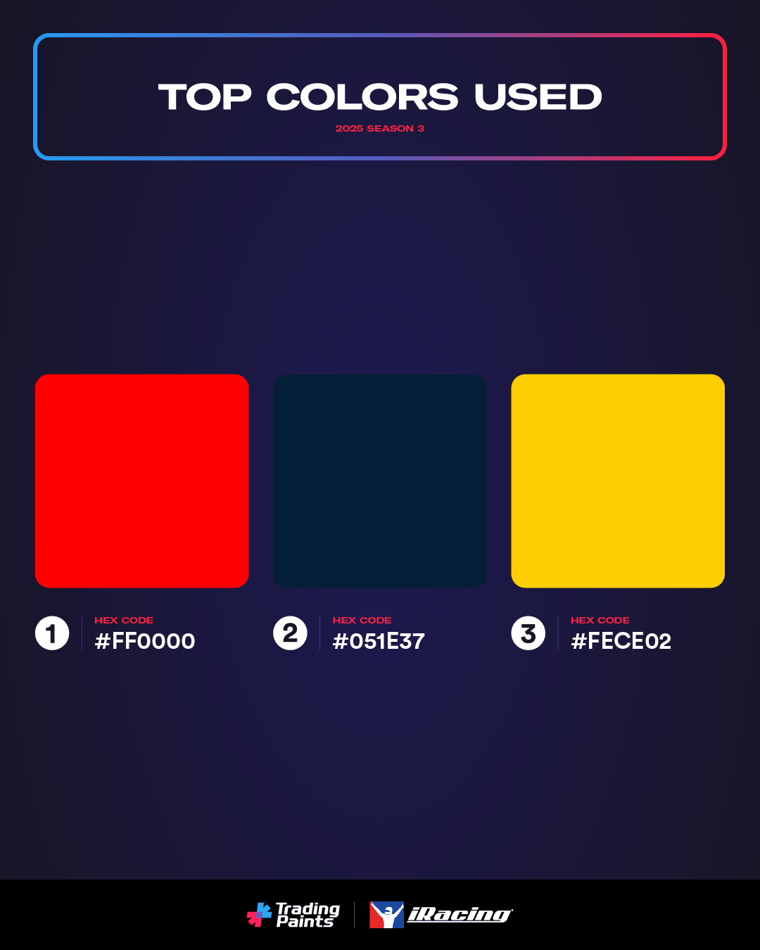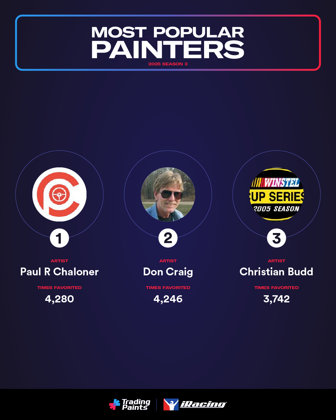 Thanks for making the iRacing track a more colorful place in Season 3. We appreciate the racers and artists that make up this vibrant sim racing community. 🏁