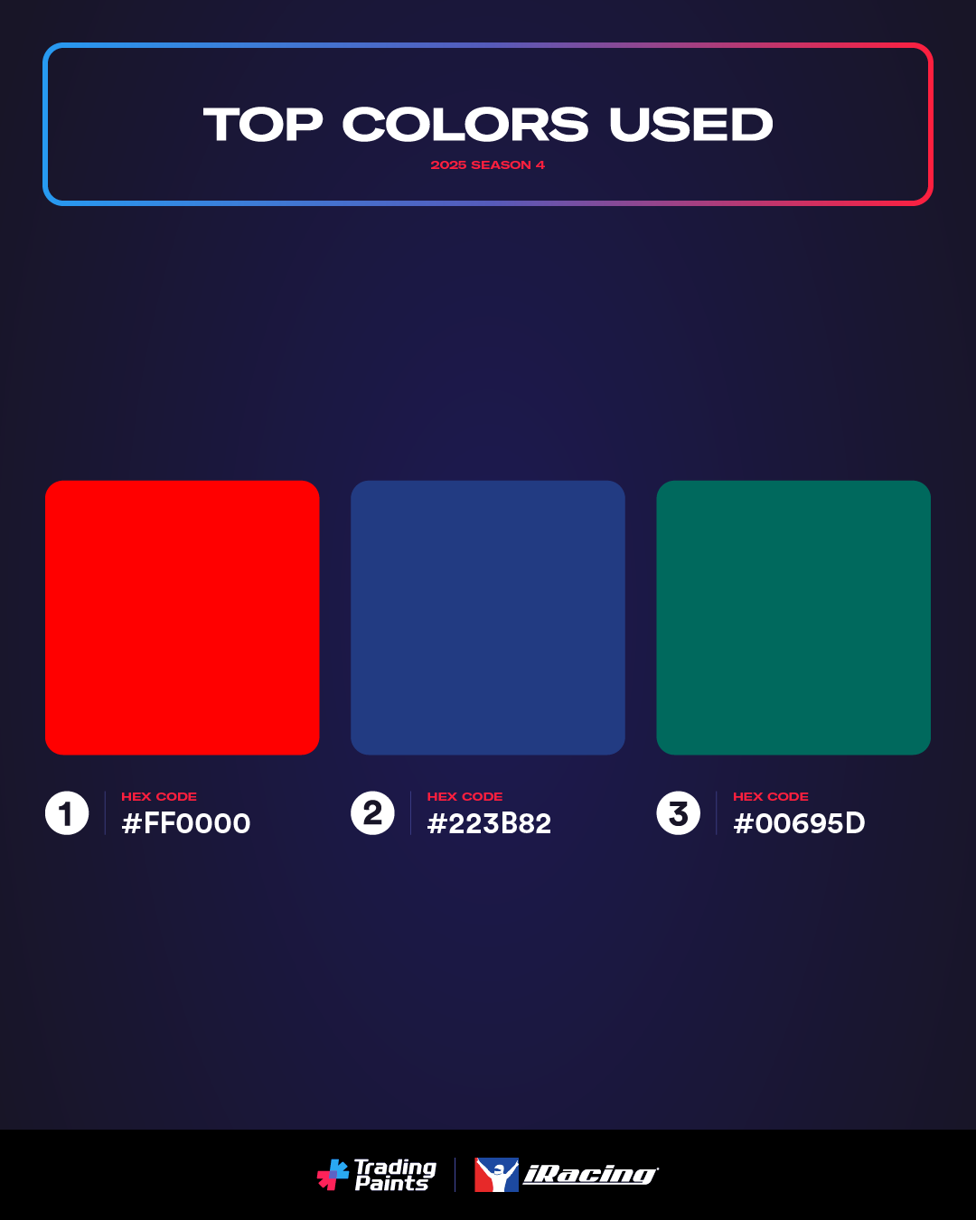 Thanks to everyone in the Trading Paints community for making iRacing a more colorful place this season! 🏁