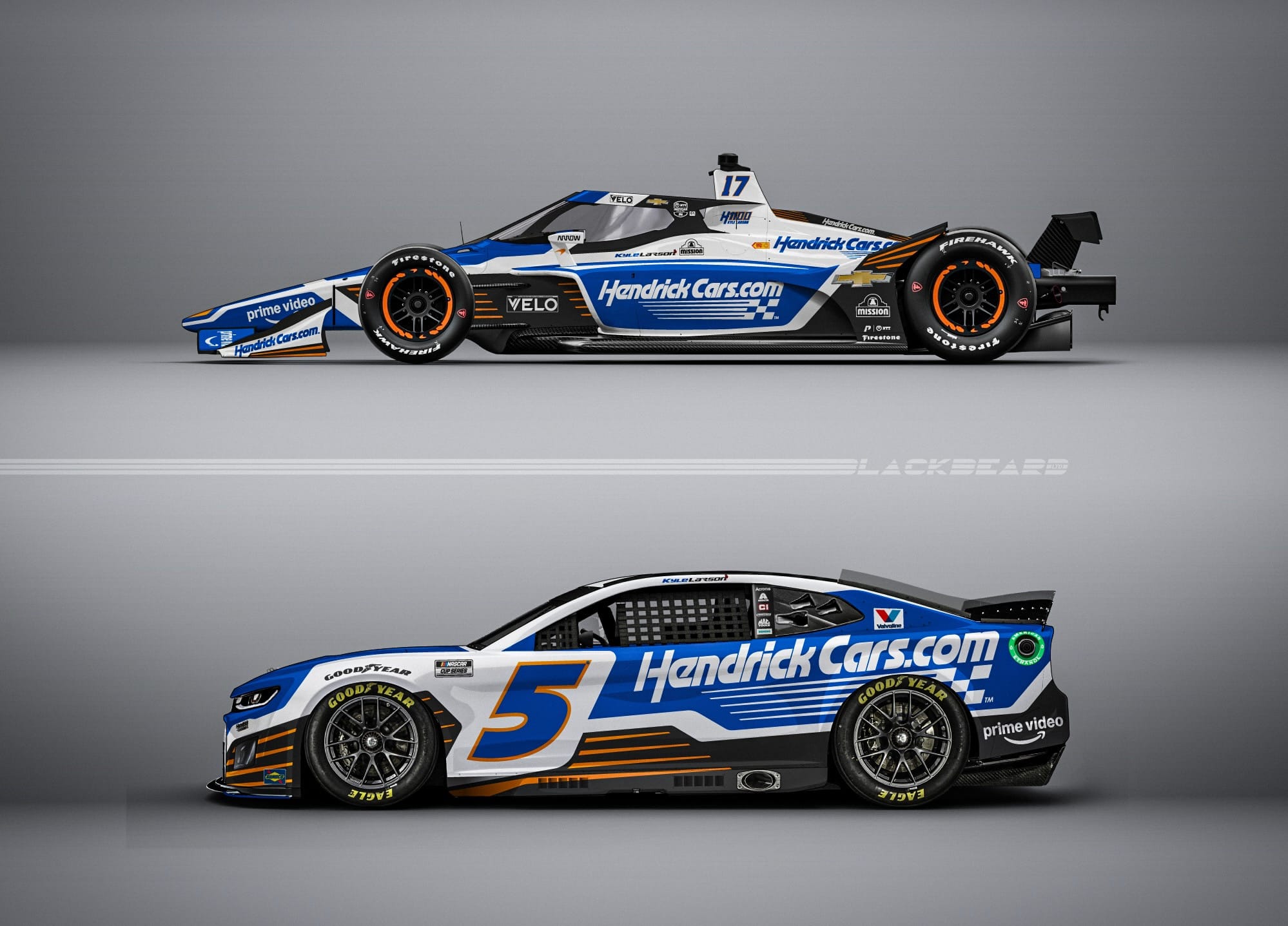 It was a big challenge. I got to do Kyle’s 600 car last year based on the Indy design that was already completed by Arrow McLaren. I was thrilled to hear that this year I was able to do both. It would be my first IndyCar design, besides two that I did for iRacing clients durning Covid. I started with the IndyCar but had no direct input or support from Arrow McLaren, only secondhand input and feedback from HendrickCars.com.