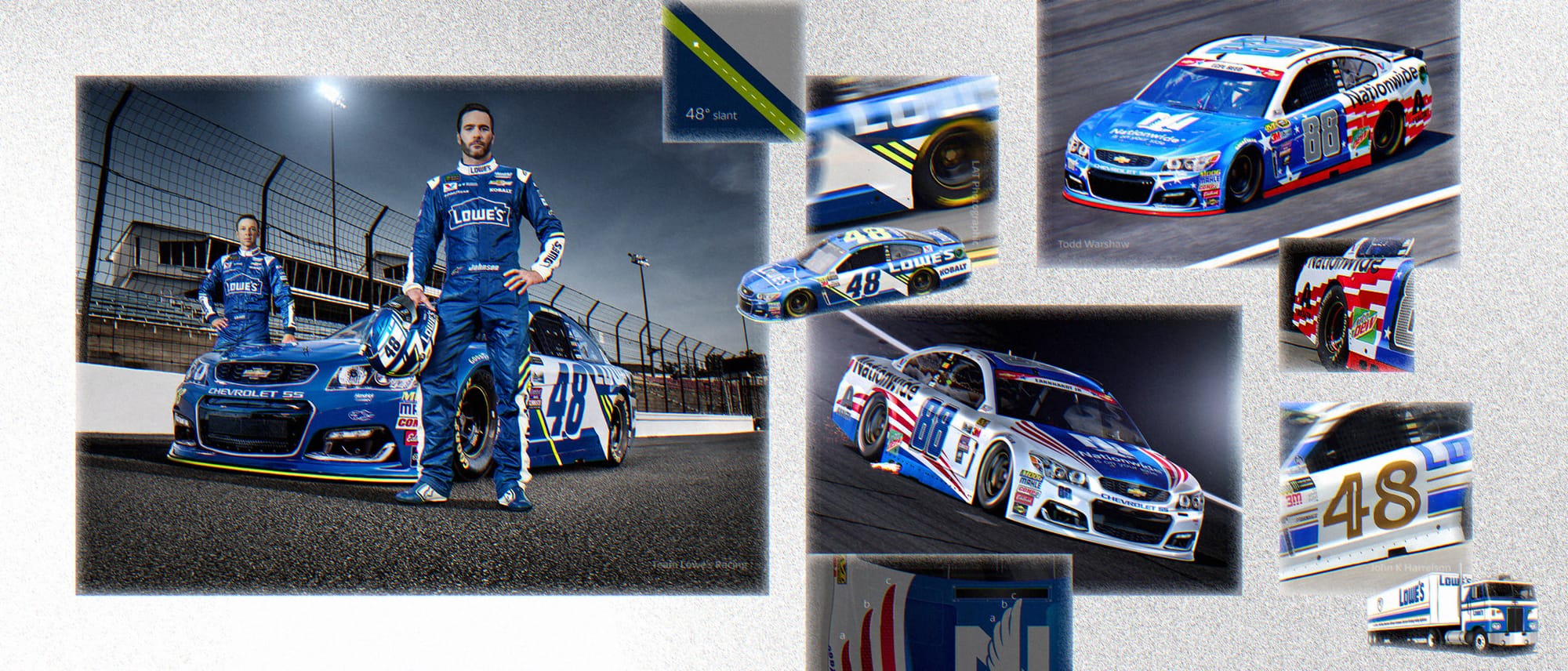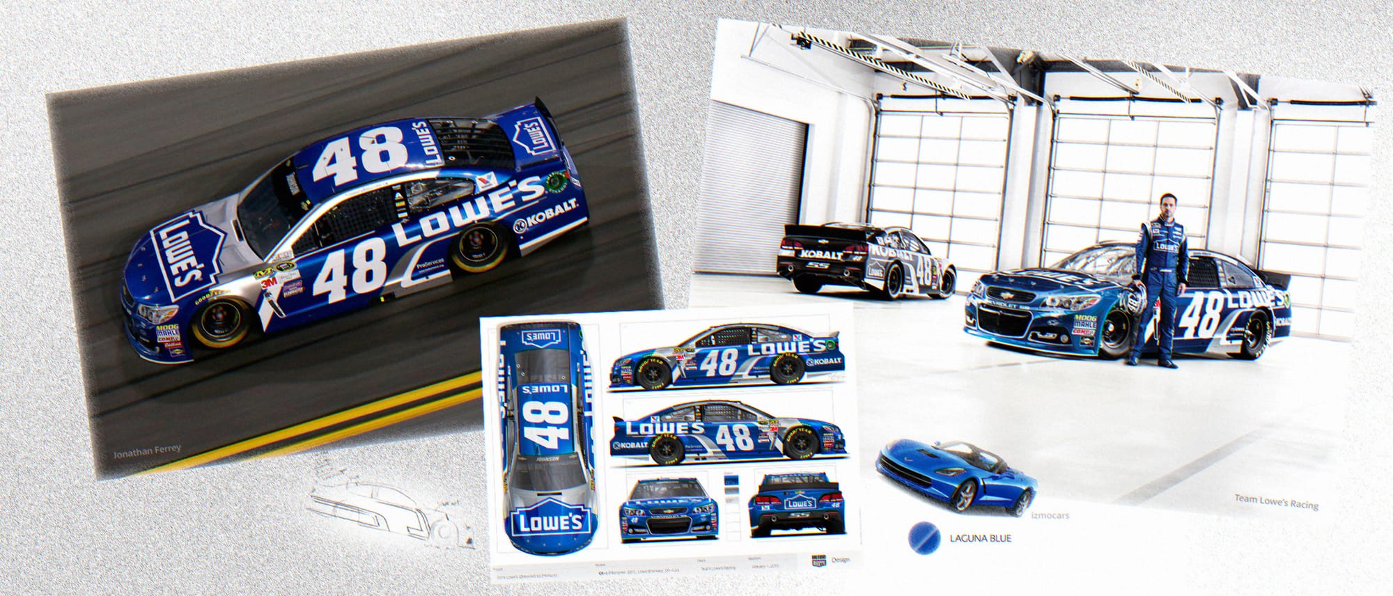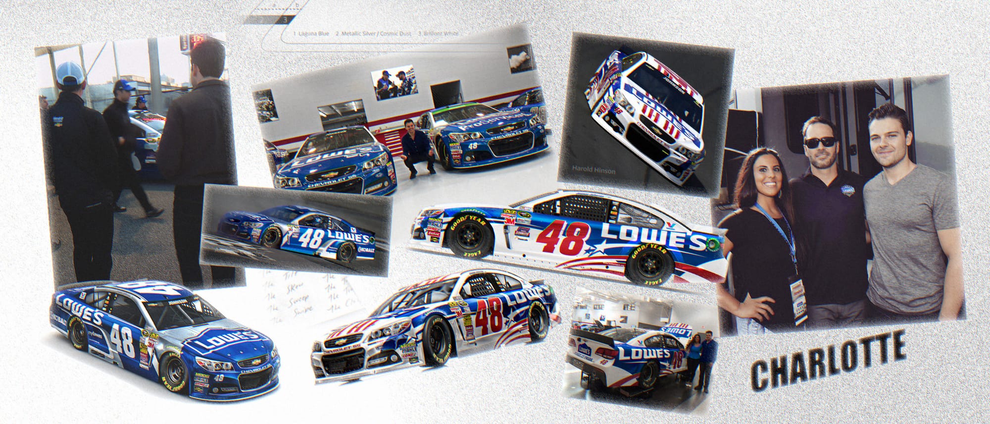 Collaborating with Lowe’s remotely, we honed in on the design that Jimmie would eventually win his seventh championship in, called Silver Sweep. In winter 2015, the design debuted at Daytona, a moment Clara and I didn’t miss in person.