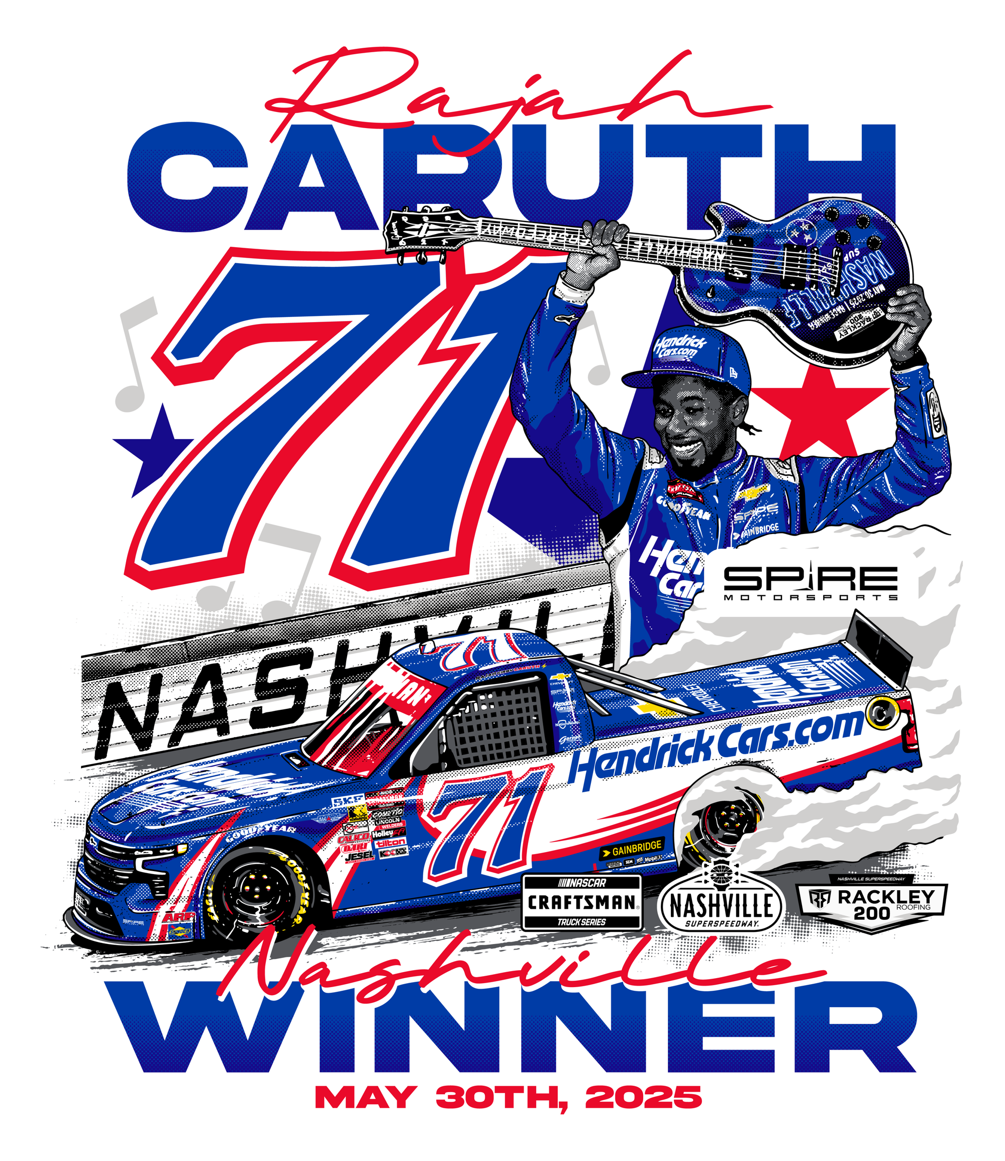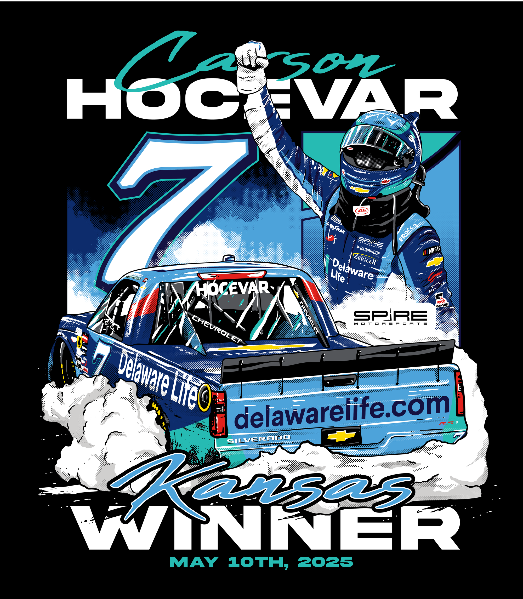 6️⃣ You had the chance to design multiple win shirts for multiple teams. What does a timeline look like from the drop of the checkered flag, and how do you handle the pressure to deliver in a timely fashion?