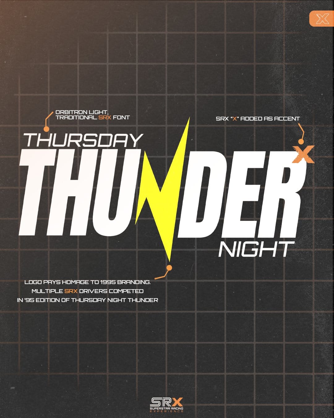 I would pin two of them as my most proud – the first one would be the Thursday Night Thunder logo design for SRX. That is a sacred moniker in motorsports and to have the chance to design the branding for it was a high honor. I scrubbed through hours of footage from the late 80’s and 90’s for inspiration and the 1995 season branding was perfect because during that year, multiple SRX drivers competed during that time. It was one of my first cracks at a major logo design in my career – and this was to be seen on TV, physical branding, etc. so there was some anxiety but plenty of excitement around it.
