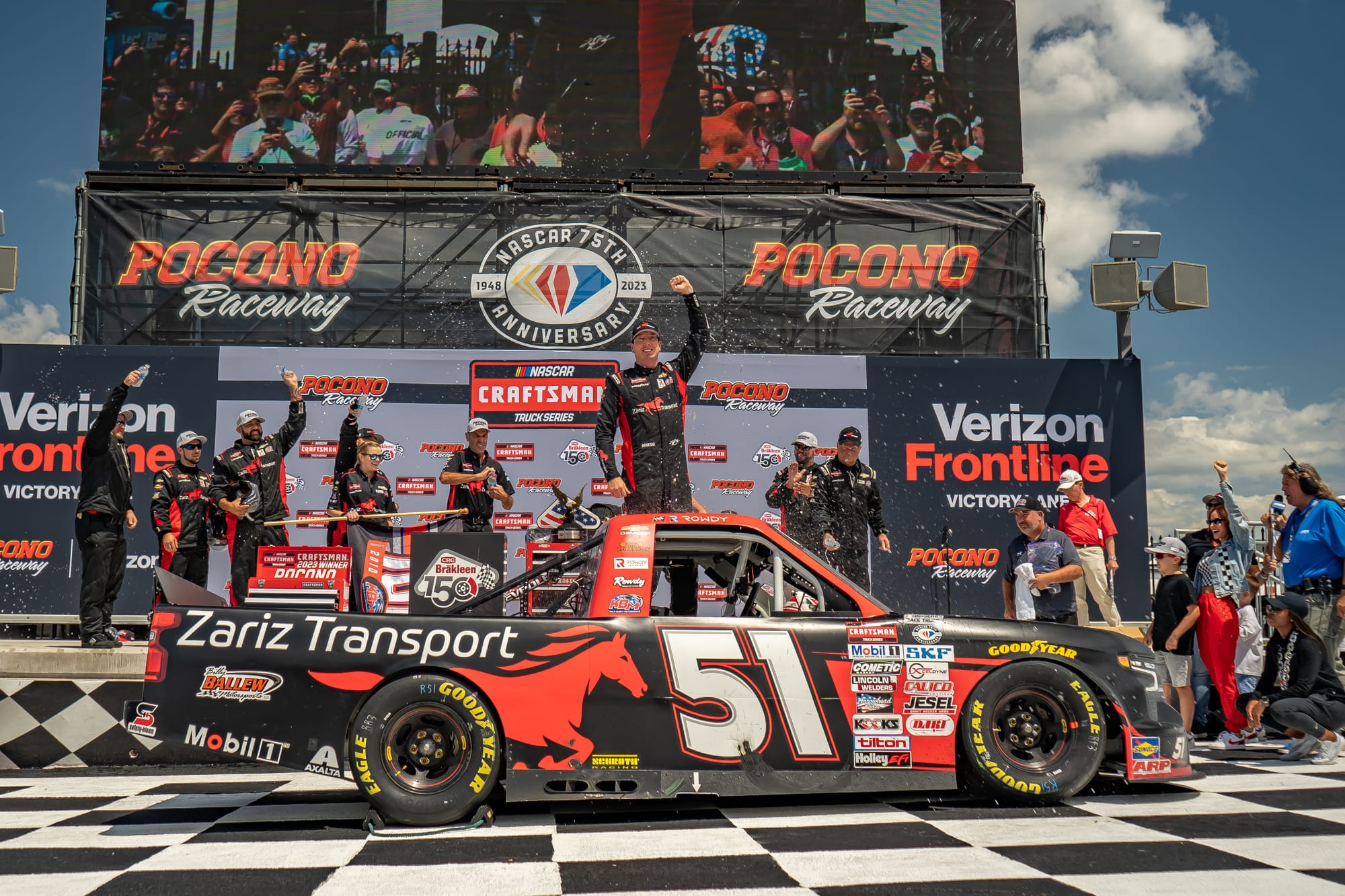 The second one would be the No. 51 Zariz Transport Silverado I designed for Kyle Busch in 2023. I spent years designing concept paint schemes for fun and always dreamed of getting a car on track. For Kyle to win the pole and race at Las Vegas and then score the 100th and final victory for KBM at Pocono was something I only dreamed was possible. My friend Daniel Ryan was there in Pocono and was able to take some great photos of the truck for me and I was glad that if I couldn’t be there, someone I knew was there to enjoy the moment. Then came the ability to buy the die-cast at the LIONEL store in Concord Mills and seeing the design on the roof of Big Daddy’s in Lake Norman just minutes from my apartment – the entire deal was a surreal experience.