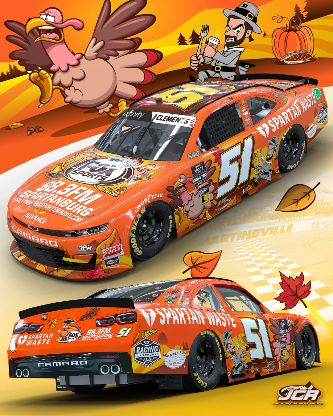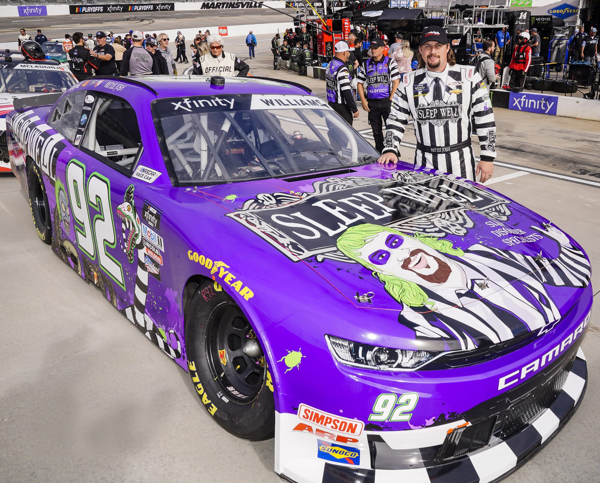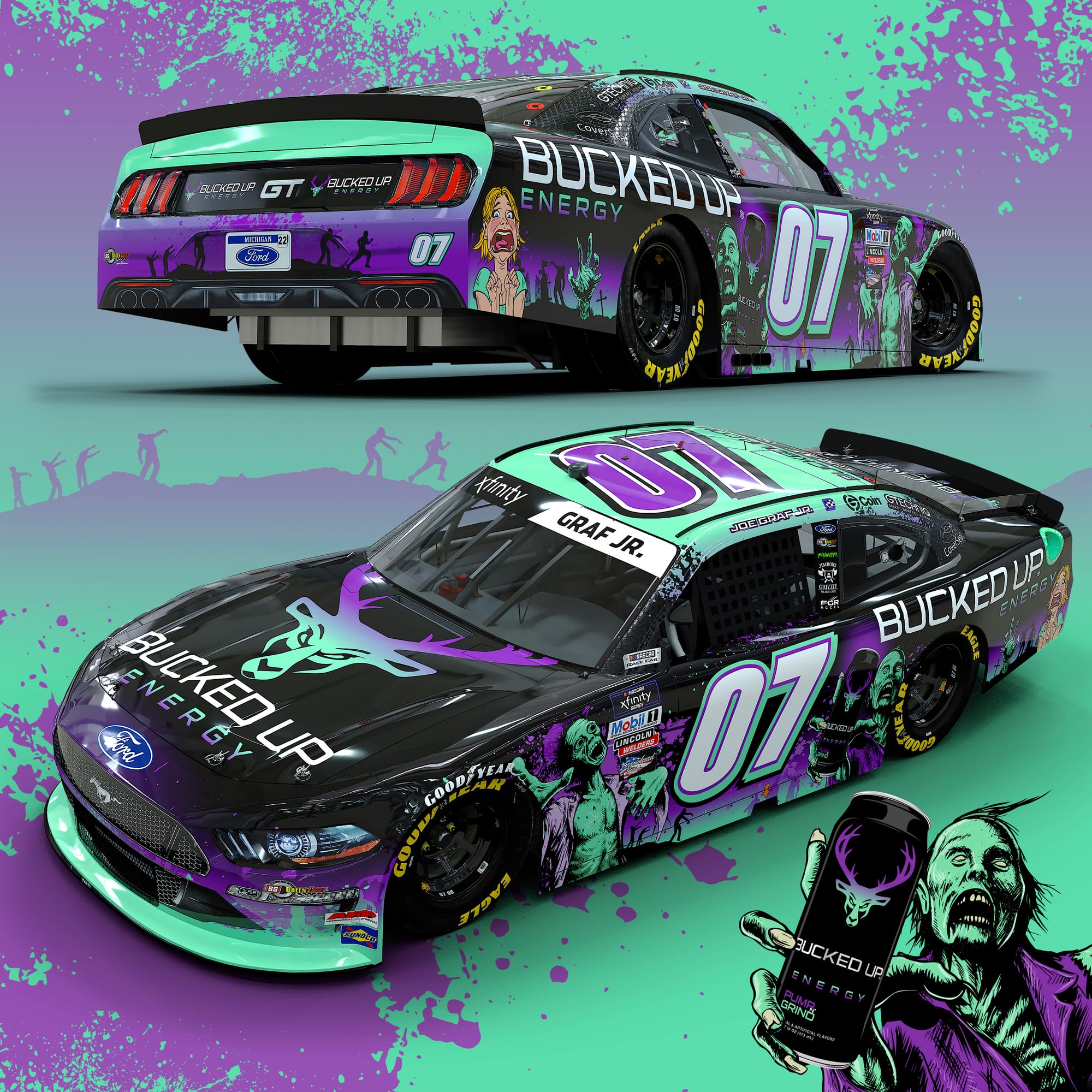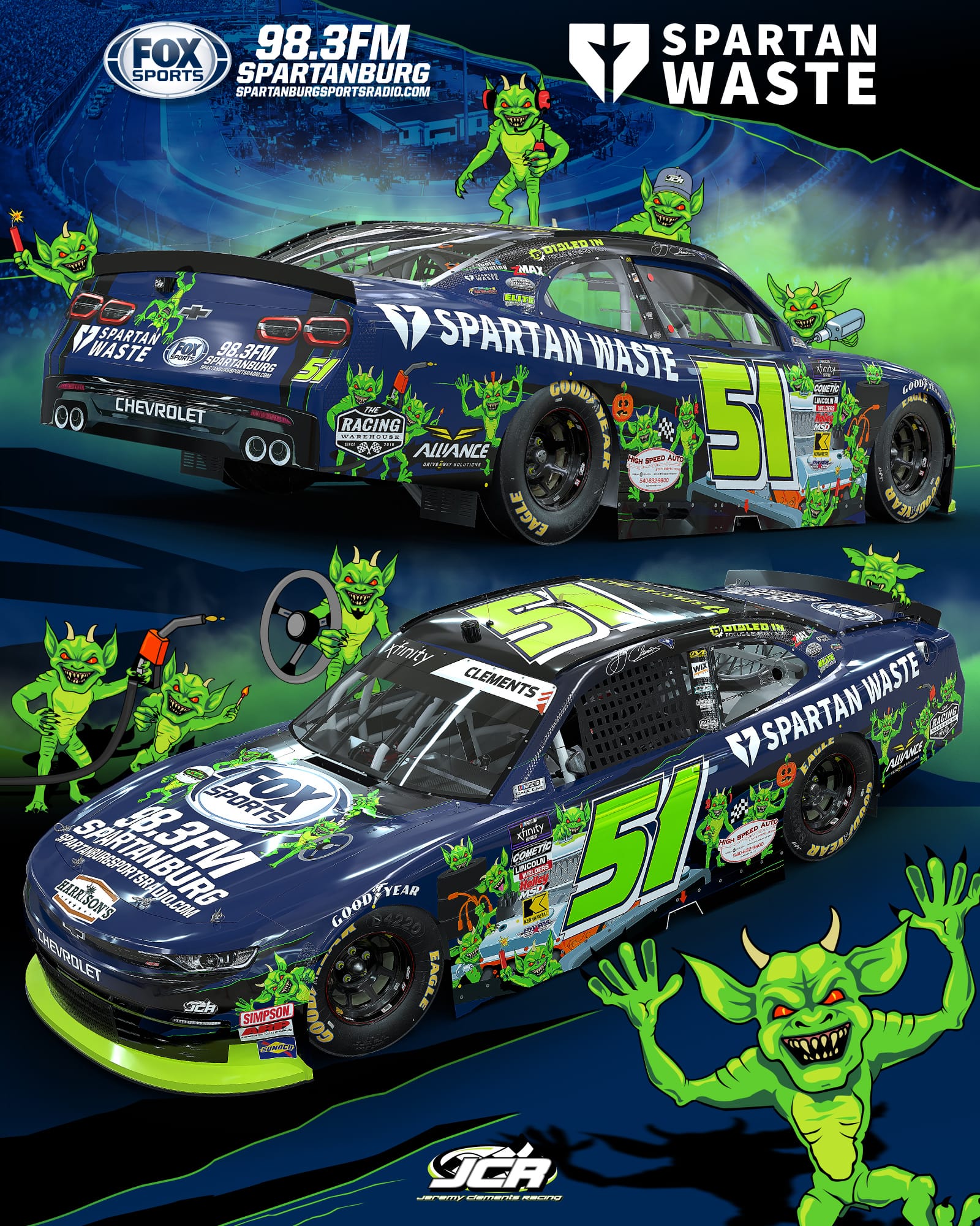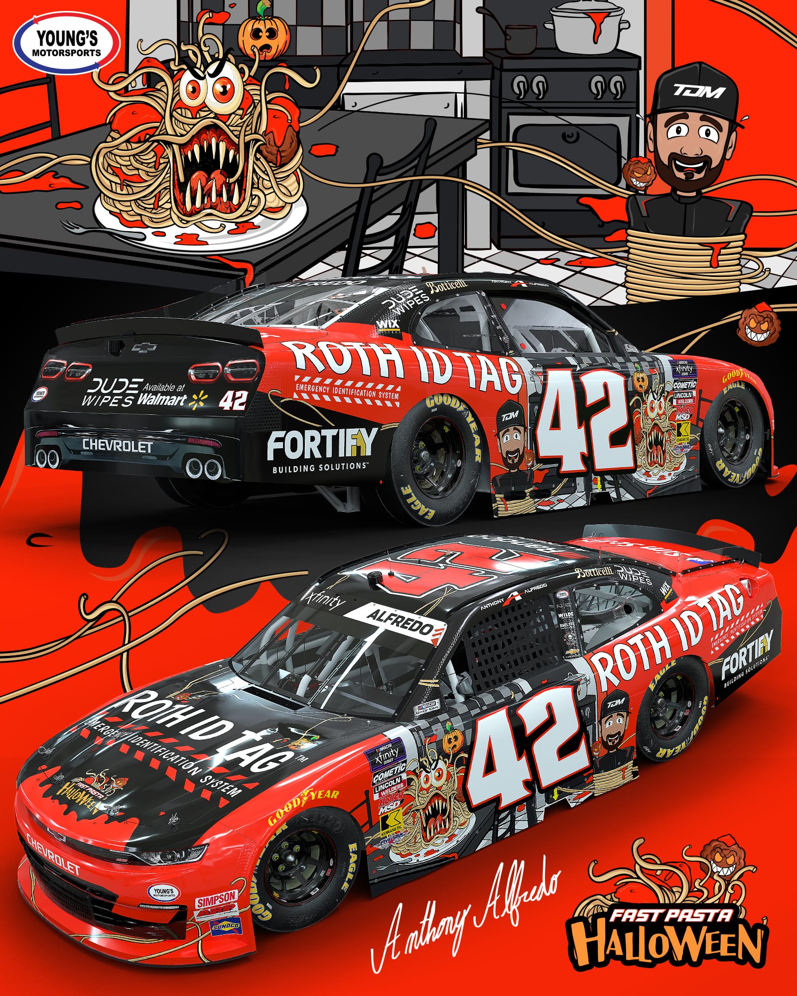 7️⃣ Many of your clients in the Xfinity Series will run Halloween-themed schemes every year, with original caricatures of creatures and even drivers. What inspires you to lean so heavily into the season and how do you convince a sponsor to get spooky?