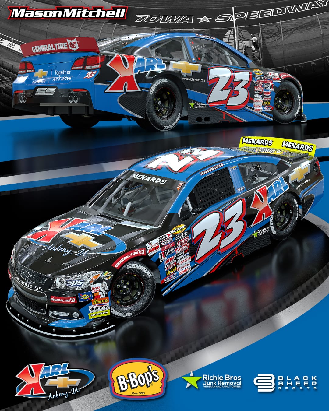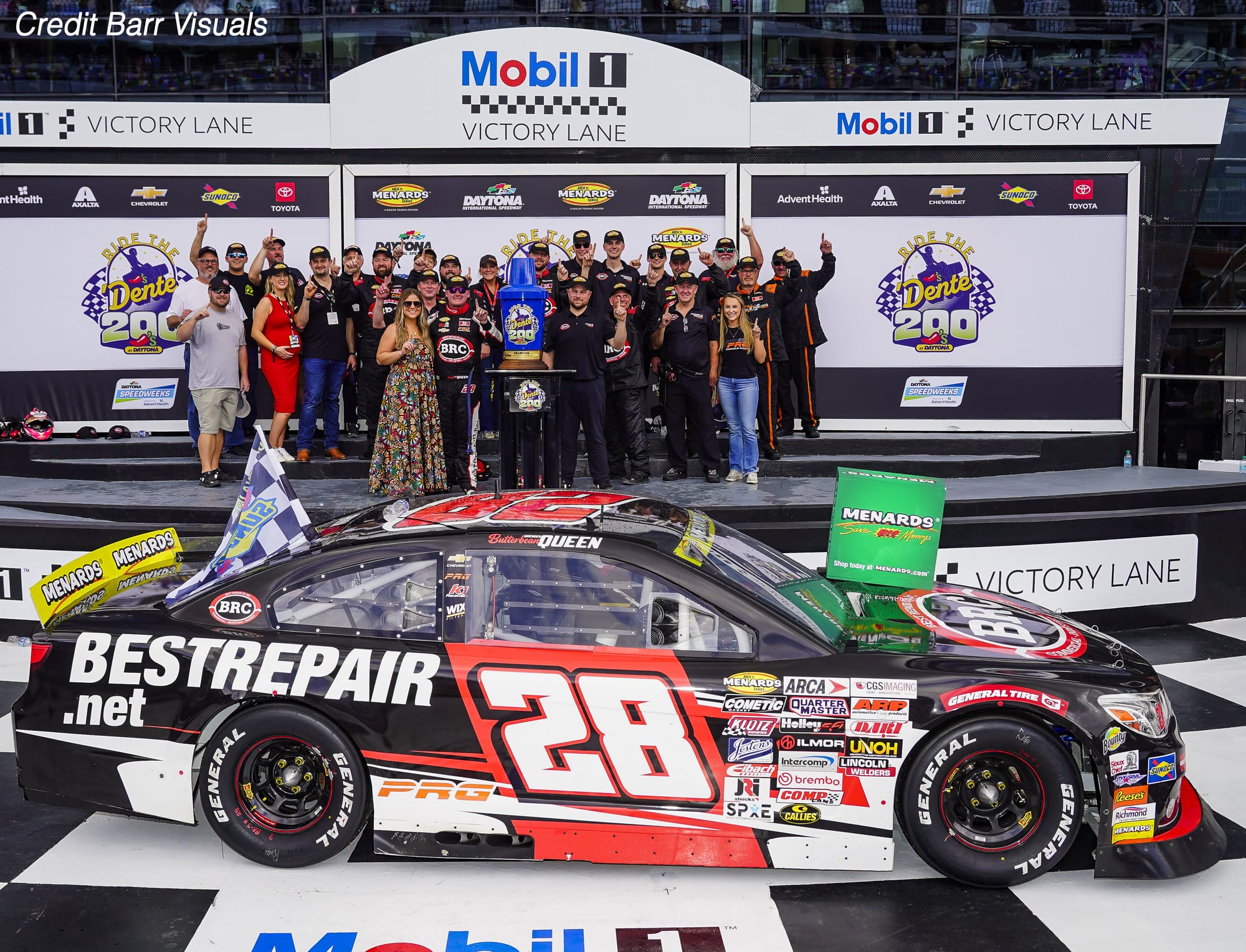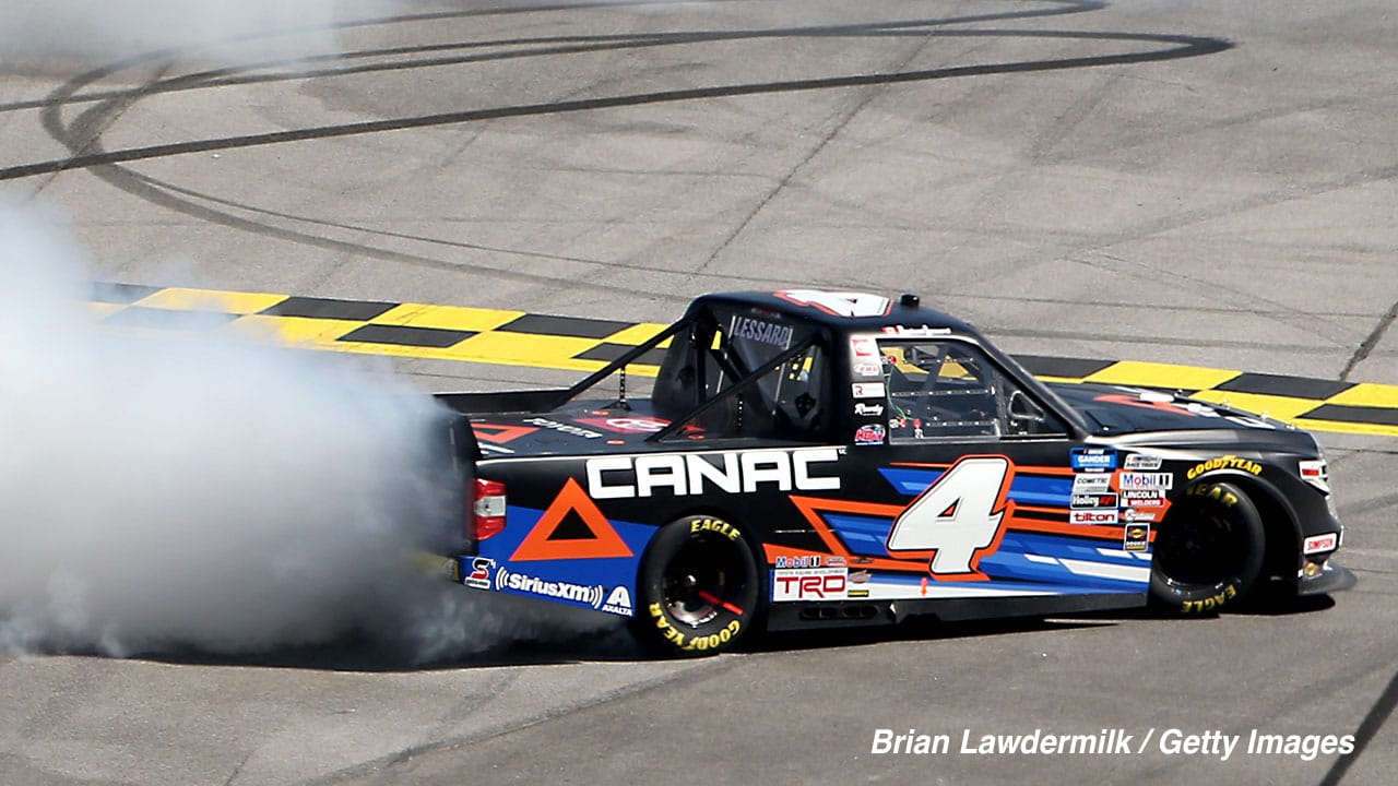 The first NASCAR victories for Brenden Queen (left) and Raphaël Lessard (right) came in liveries designed by Michael Miceli. (Images courtesy of Michael Miceli)