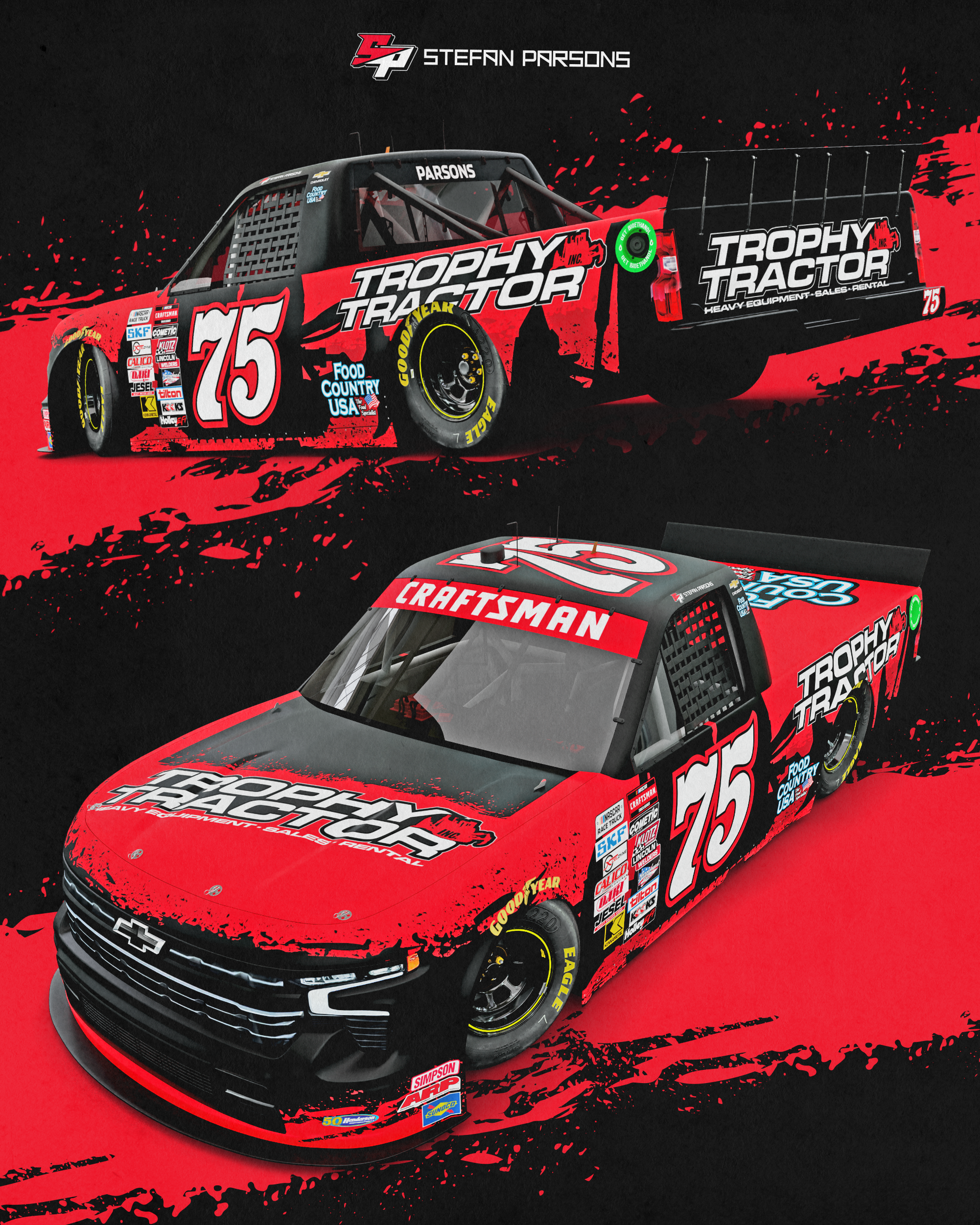 Ryan designs paint schemes and for numerous teams across NASCAR’s top series, including Spire Motorsports, RSS Racing, StarCom Racing, as well as individual drivers. He’s one of the most popular creators on Trading Paints, too, between porting over his real-world designs for iRacing, as well as painstakingly recreating historical cars.