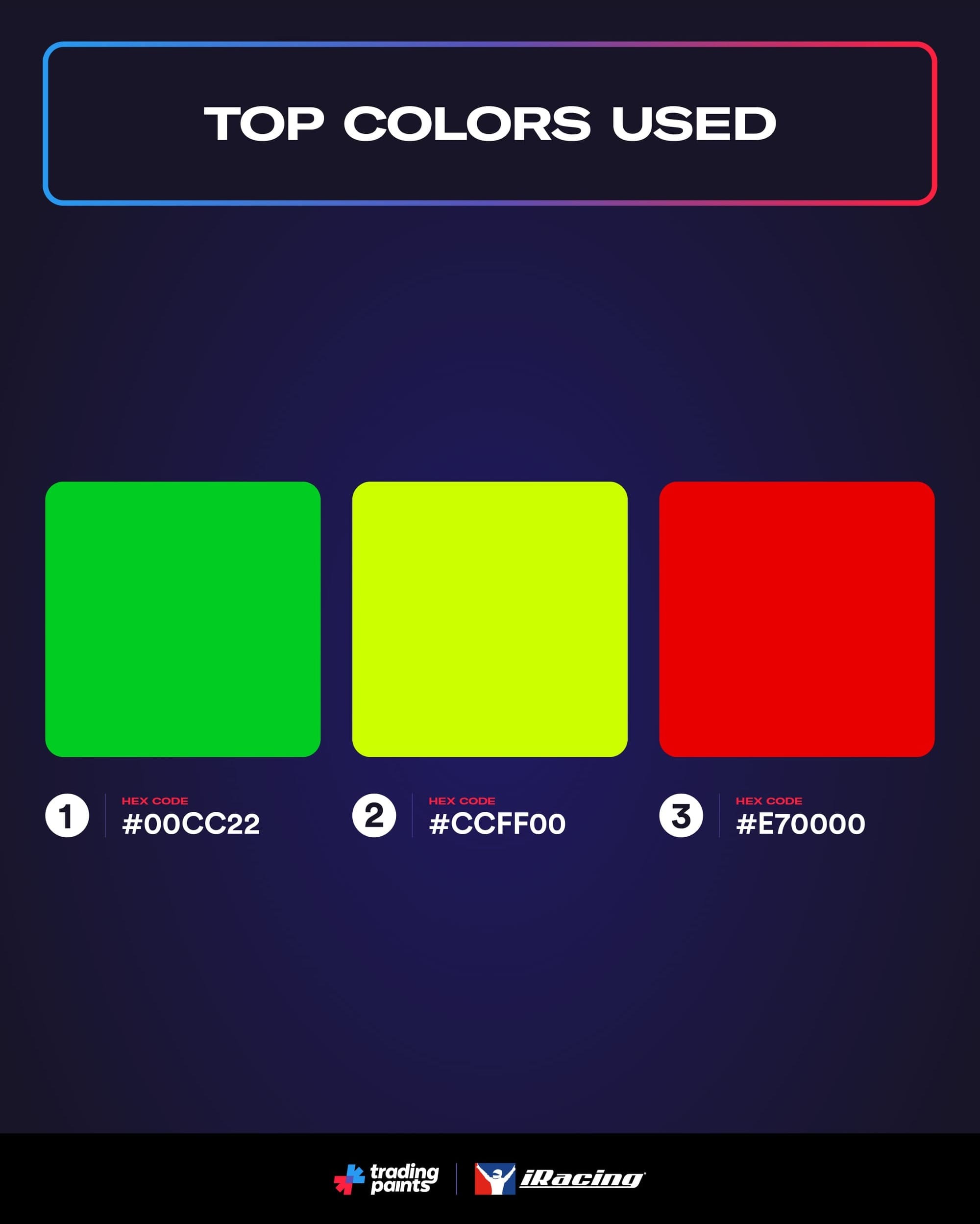 We’ve pored over every one of the 3.5 trillion pixels’ worth of paints uploaded in Season 4 (well, the computer did—we mortal humans have no time for that) and identified the three most popular color codes used.