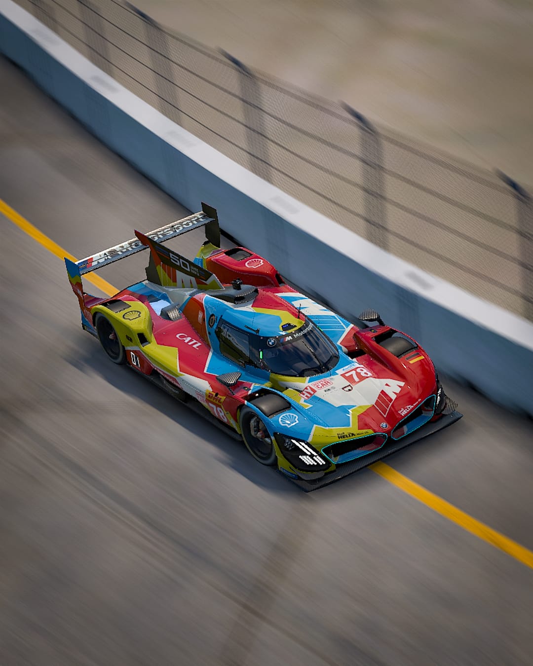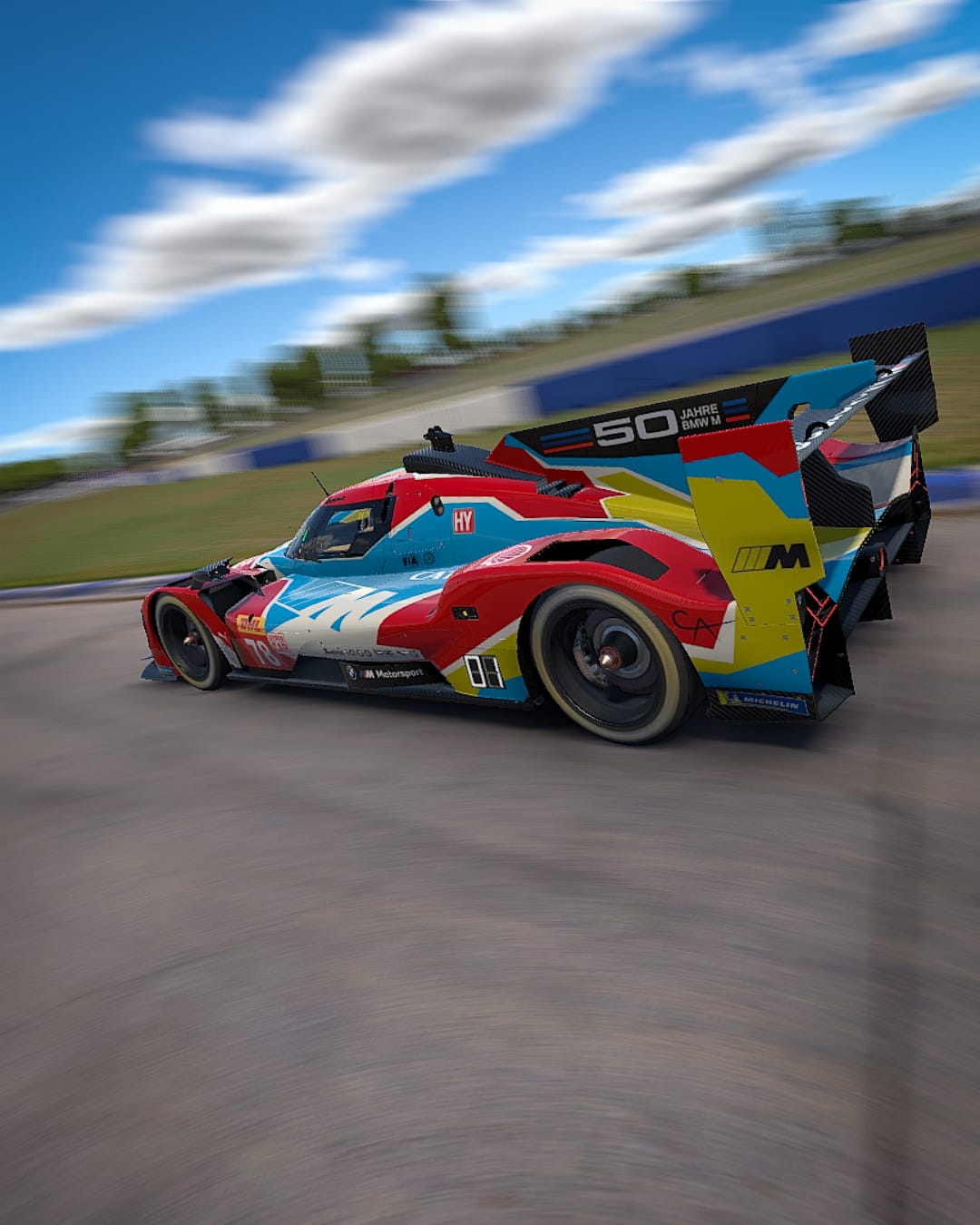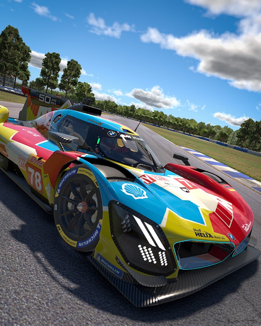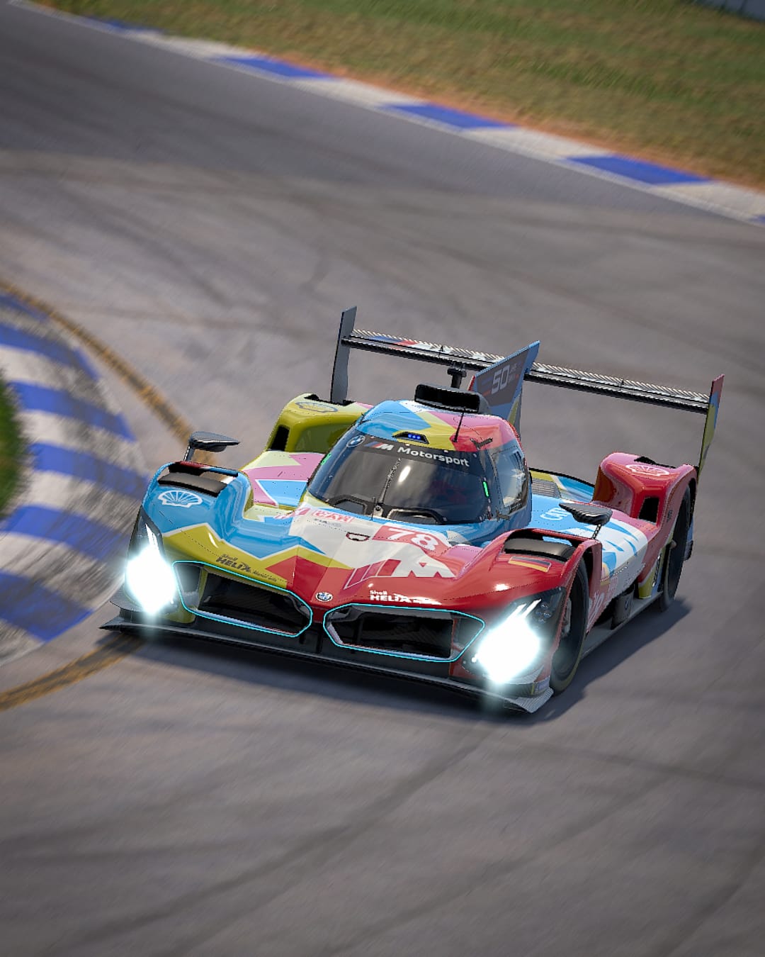Trading Paints Community Manager Patrick selected this colorful BMW M Hybrid V8 originally created by Sean Bull Design and brought to iRacing through the talents of Samuel J Ball as this week’s Paint of the Week.