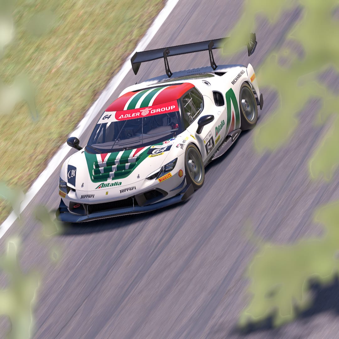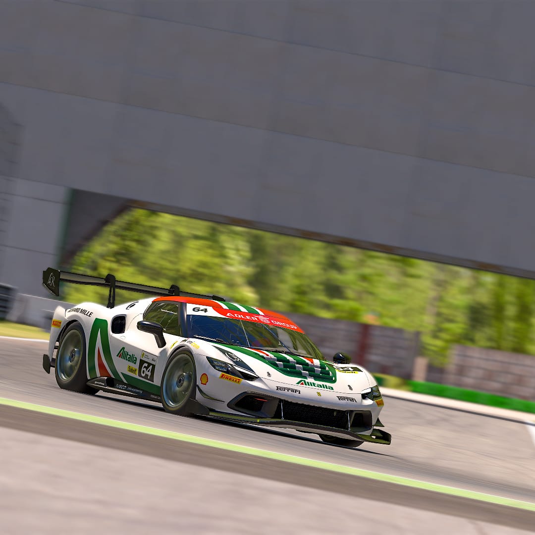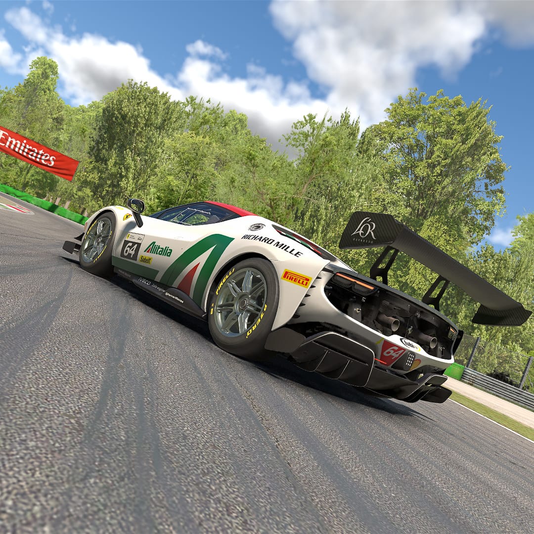 Maris J Hibma shared a lovely Ferrari “inspired by the iconic Alitalia liveries” — painted on iRacing’s newly-released Ferrari 296 Challenge. It’s this week’s Paint of the Week, chosen by Community Manager Patrick.