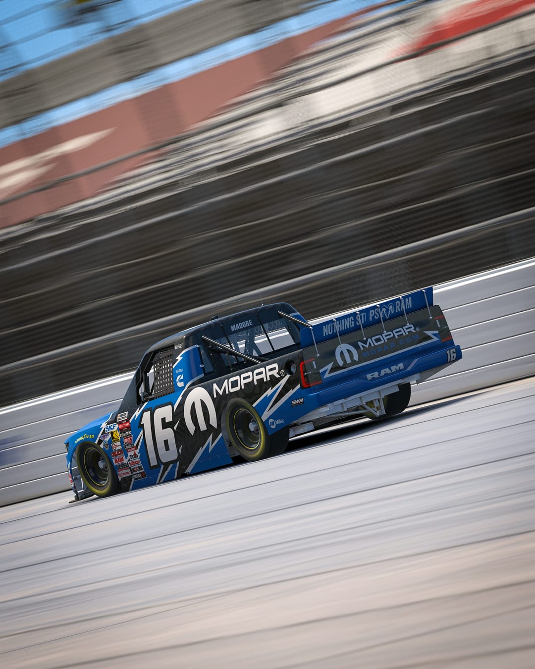 We’ve seen a lot of lovely new RAM trucks on the track since the new iRacing build. Justin T Wilkinson shared this gorgeous Mopar-adorned RAM, earning the title of Paint of the Week from our Community Manager, Patrick.