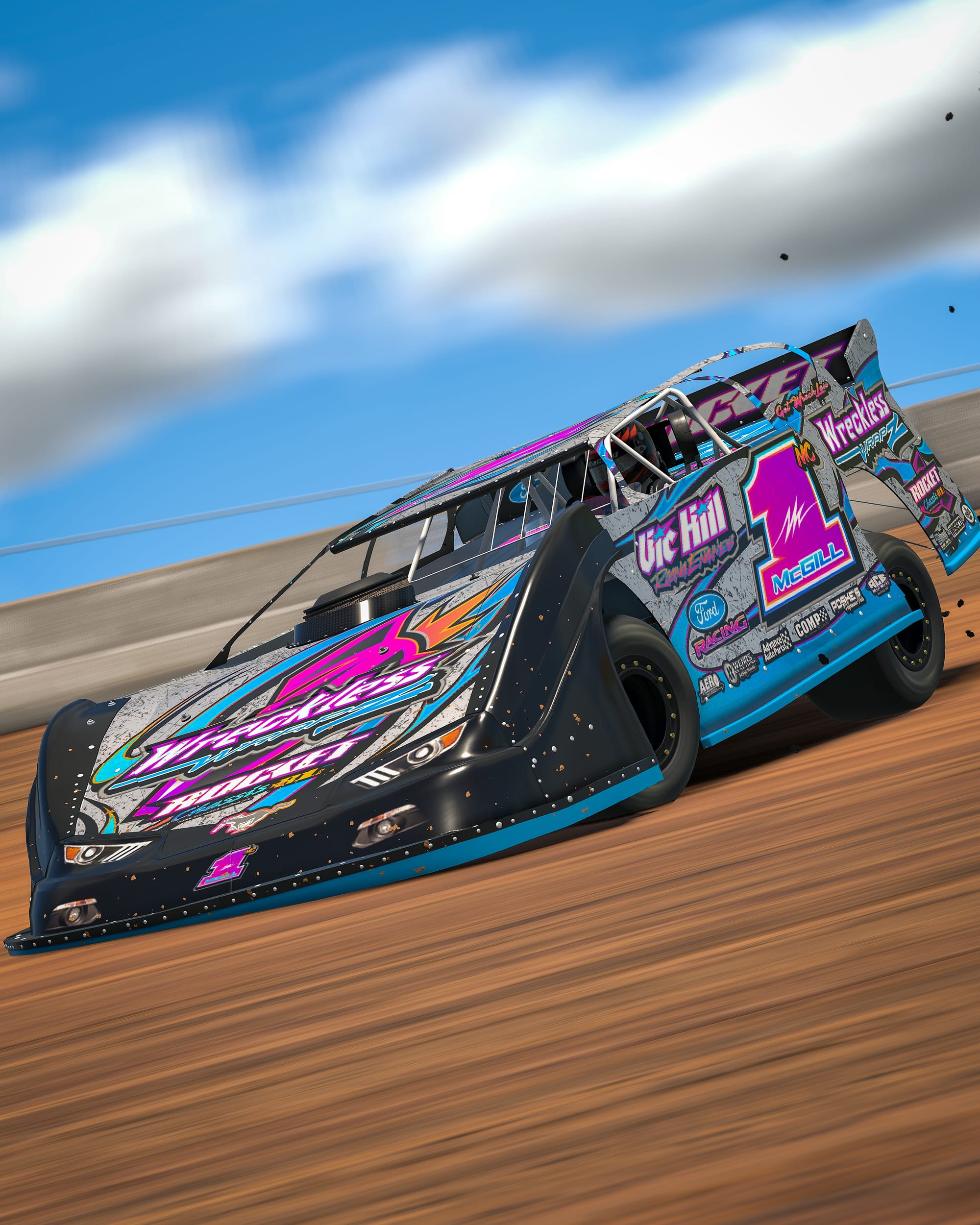 This week’s Paint of the Week, chosen by our Community Manager, Patrick, is a dirt late model from Tyler D. Tyler says this design is a “WreckLess WrapZ tribute to my favorite driver as a child, ‘The Doddrige Country Terror’ Butch McGill.”
